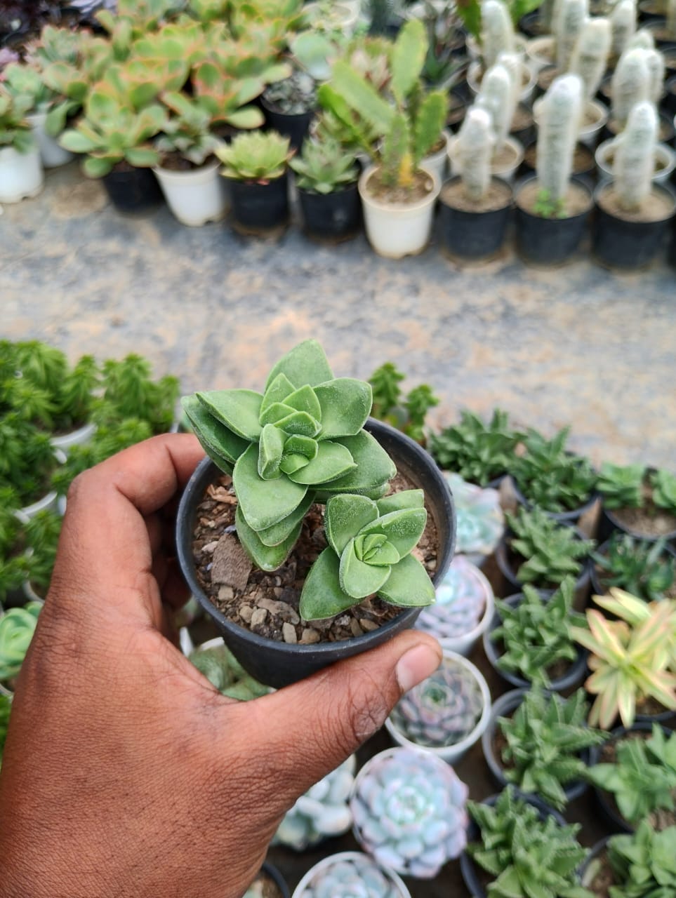 Crassula ‘Springtime’ is a charming and compact succulent known for its attractive foliage and beautiful seasonal blooms. It features small, thick, fleshy leaves that are green to blue-green, forming a dense, rosette-like growth. The leaves often grow in a stacked or overlapping pattern, creating a lush, full appearance that makes the plant visually appealing year-round.