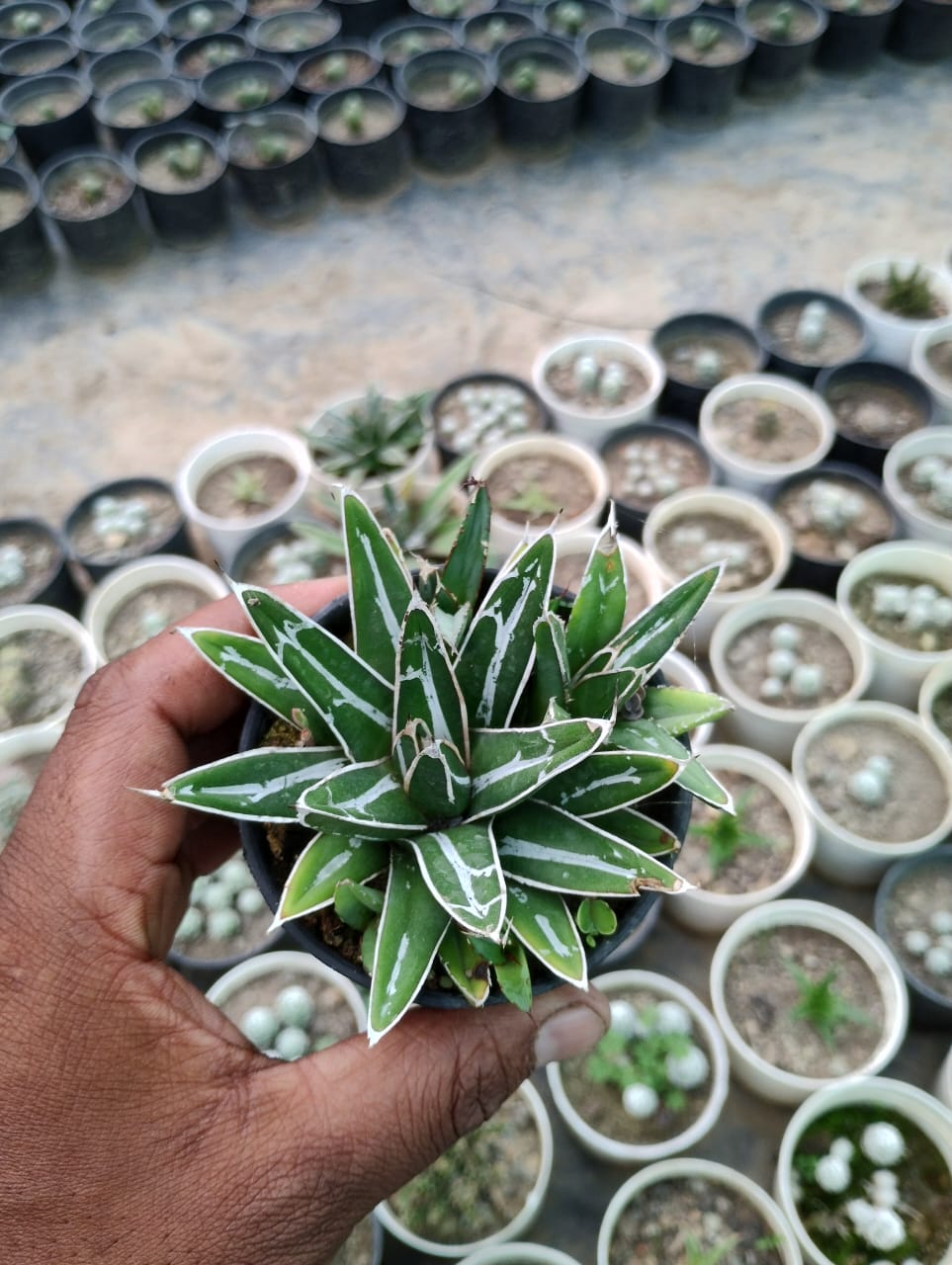 Queen Victoria Agave (Agave victoriae-reginae) is a stunning, compact succulent known for its striking rosette of thick, dark green leaves with white markings. Each leaf tapers to a sharp point, forming a symmetrical, dome-like shape. This slow-growing, drought-tolerant plant thrives in arid environments and is prized for its architectural beauty.