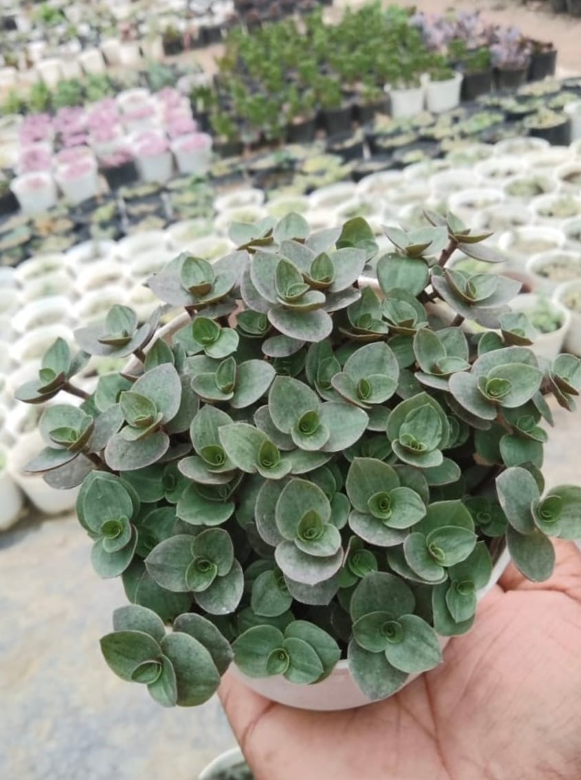 The Turtle Vine is also noted for its attractive pinkish-purple stems, which add visual interest. In the summer, it may produce small, white or purple flowers that enhance its charm. This easy-to-care-for succulent is an ideal addition to both indoor and outdoor gardens.